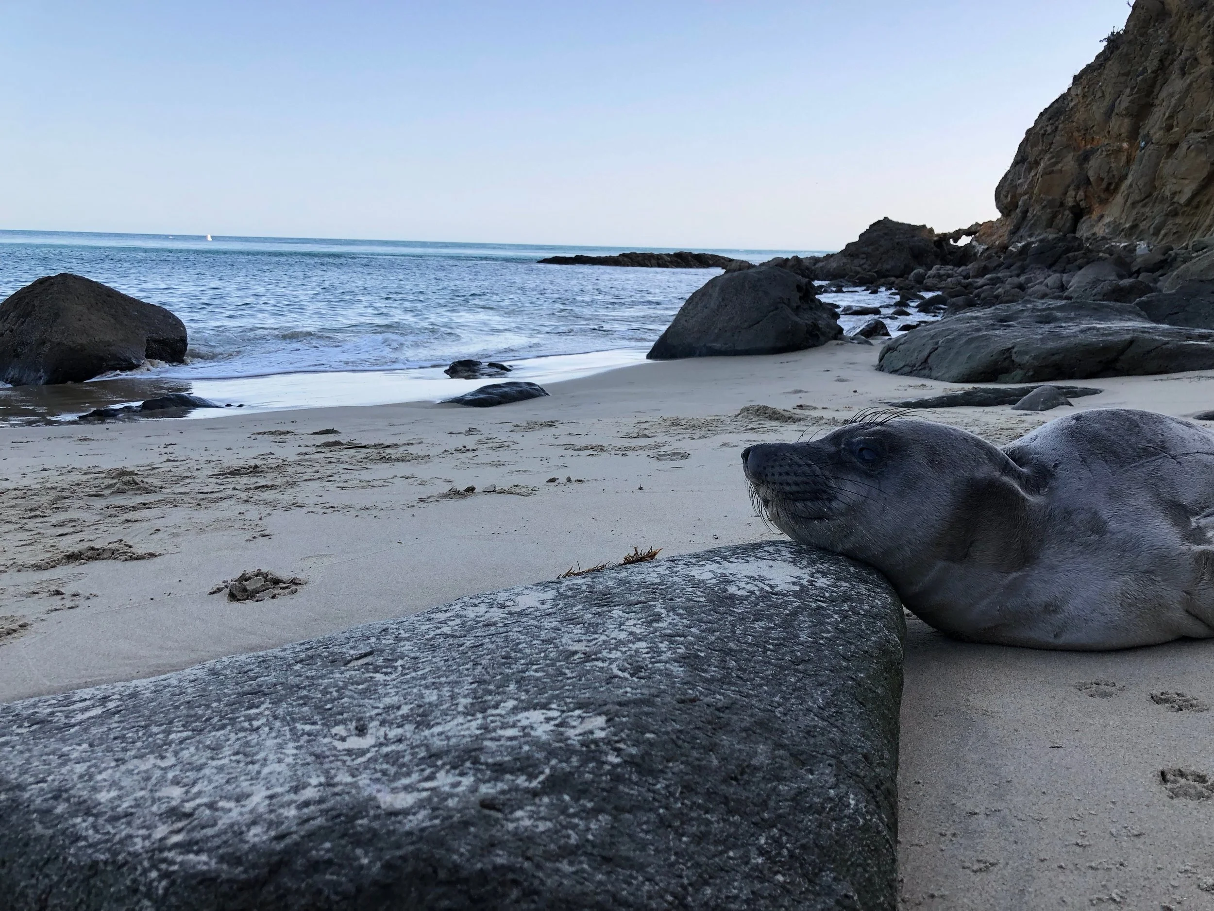 I jumped up and ran like a monkey towards the sea, chirping like a singing bird for my friend to “get in the ocean, come on!” To my sheer amazement, the seal lazily moved. An inch. Resting his triple chins on a rock to look at me with the emotion of animal indifference.